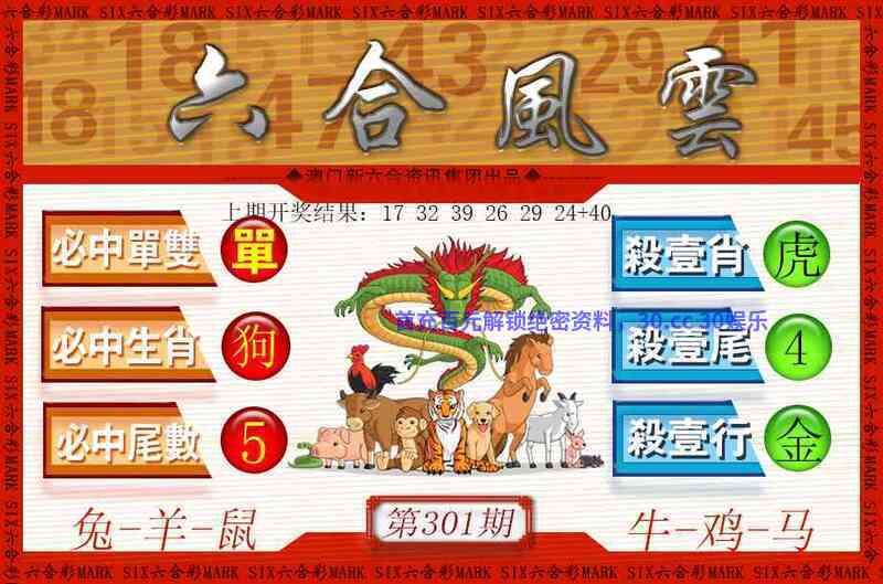 | 301期三组二连肖 (虎牛)➹(蛇狗)➹(鼠龙) 开奖:羊猴鸡龙牛鸡+牛 |